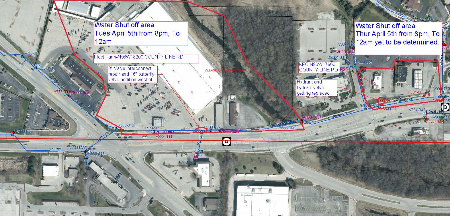 - On Tuesday April 5th, we have a valve repair near the south entrance to Fleet Farm the water shut off will be at 8pm but the excavation work will start early to prep. We plan to set up the one lane closure north side west bound lane sometime on Tuesday am.